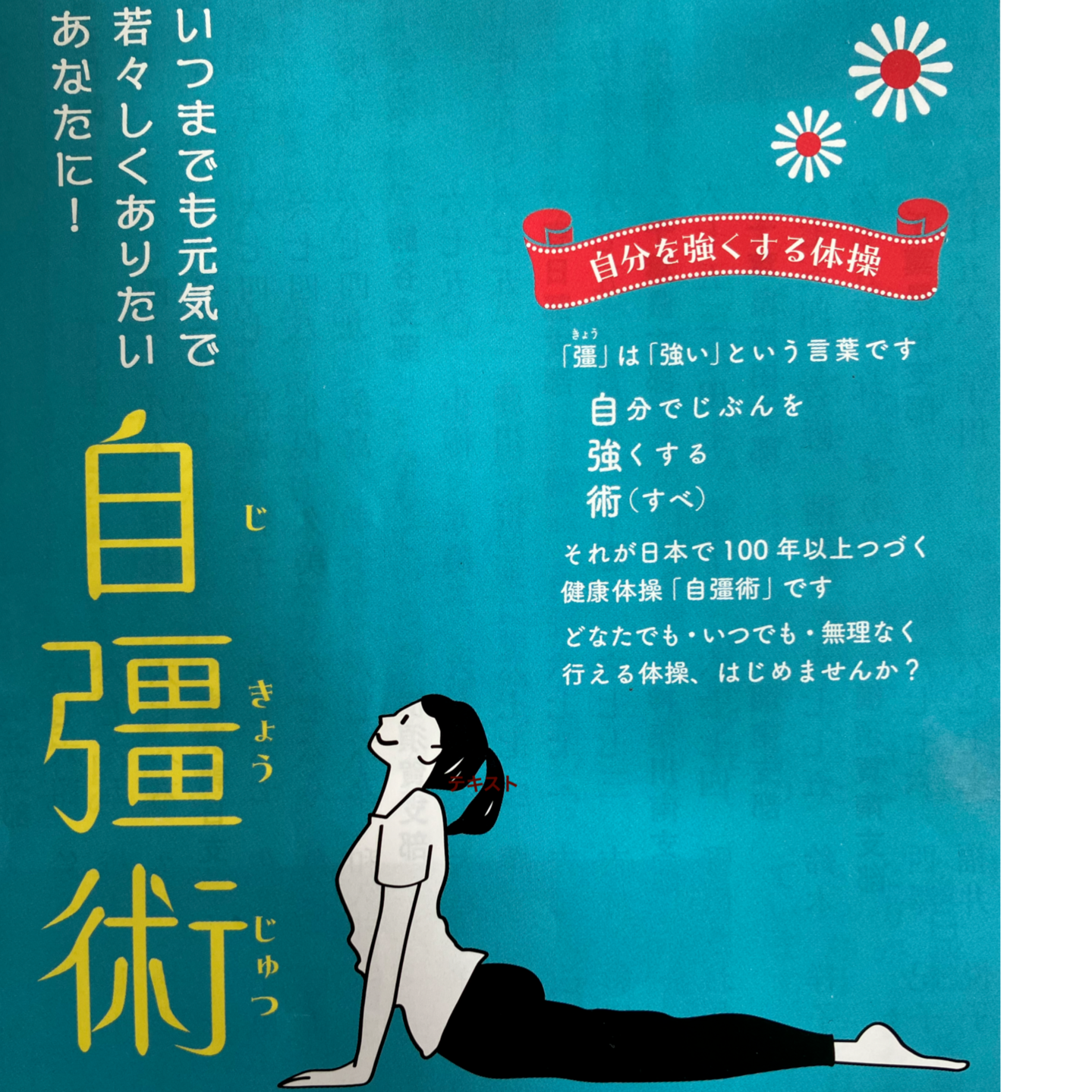 自彊術体操は、31の動きで、身体をくまなく動かし、体調を整える治療法由来の伝統ある(大正5年~)体操です。森林公園近くの空気の良い小さな施設(プルーマサロン)にて教室を開催しています。随時体験を受け付けておりますので、ぜひお気軽にご連絡ください。